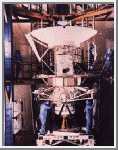 program. The long, white, horn-shaped antenna, attached just to the