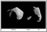 These are views of the three asteroids that have been imaged at close range by spacecraft. The image of Mathilde (left) was