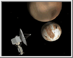Pluto has a tenuous atmosphere that only exists when the planet is closest to the Sun. Pluto Express is designed to reach the planet as quickly as possible, before the tenuous can refreeze onto the surface as the planet recedes from the Sun. The two spacecraft are scheduled for launch beginning in 2001, with expected arrival at Pluto around 2013. Studies of the double-planet system will begin 12-18 months prior to closest approach.