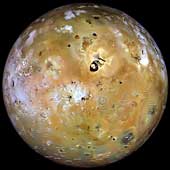 Io puede ser clasificada como la menos común de las lunas de nuestro sistema solar. La actividad volcánica de Io fue el mayor descubrimiento inesperado de Júpiter. Era la primera vez que se observaban volcanes activos en otro cuerpo del sistema solar. Las naves Voyager observaron sobre Io la erupción simultánea de nueve volcanes. Existe también la evidencia de que otras erupciones tuvieron lugar entre las visitas de las dos naves. Los penachos de los volcanes se extienden más allá de los 300 kilómetros (190 millas) sobre la superficie, con materiales expulsados a velocidades cercanas al kilómetro (0.6 millas) por segundo.